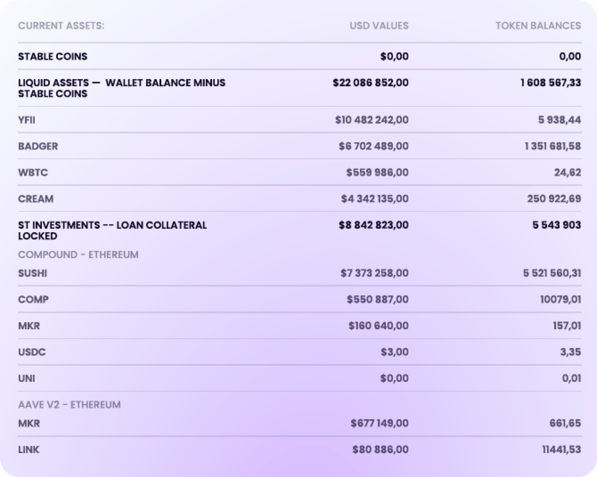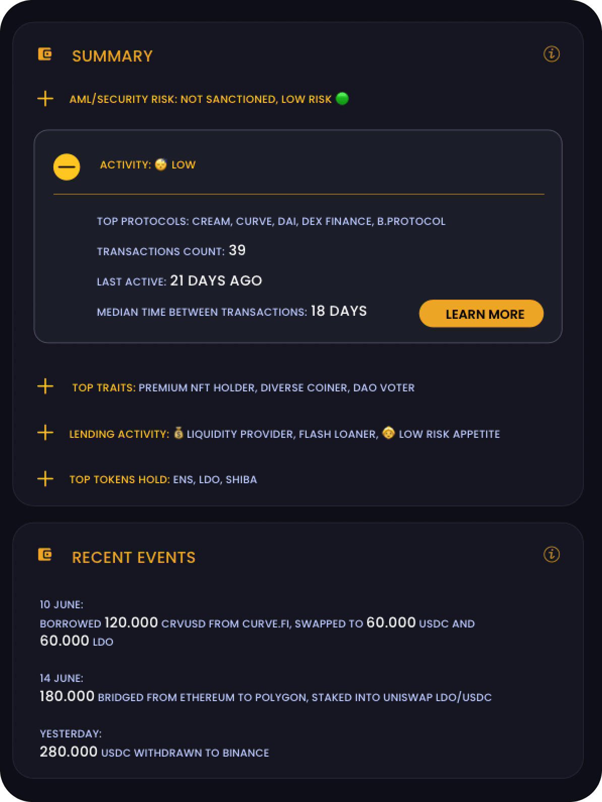 Find wallets by balance, cashflow, lending and liquidity providing activity.